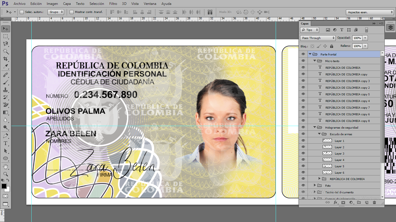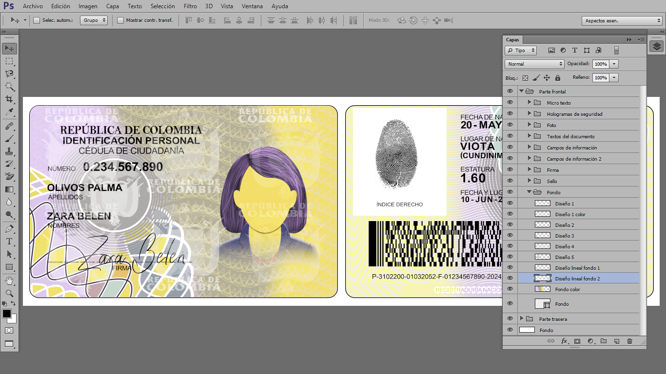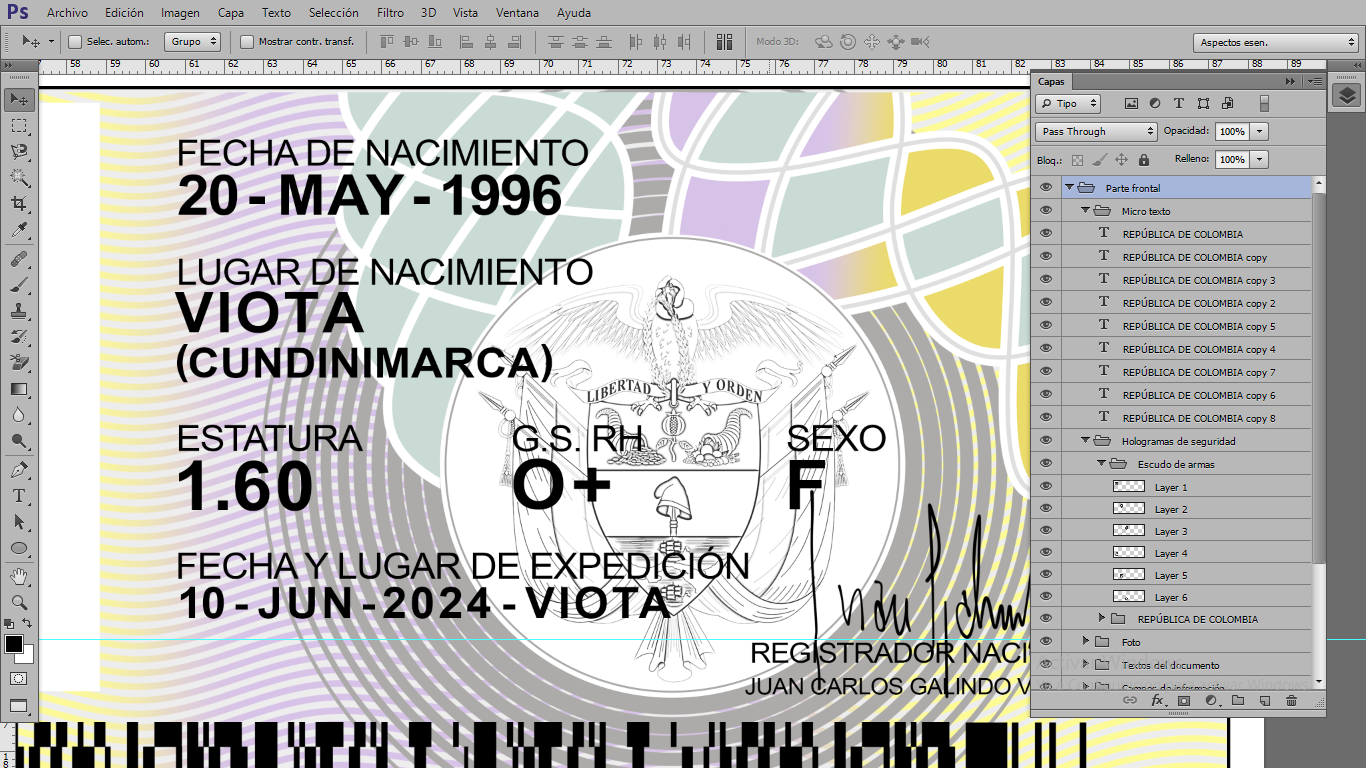 Plantilla PSD editable, para crear duplicados ilustrativos de Cédulas de Colombia, para actividades On-Line, crear cuentas de diversas plataformas Urber, In-Drive, Didi o verificar usuarios de plataformas que piden enviar foto de dicho documento
